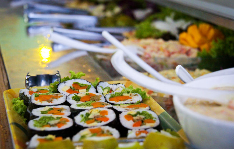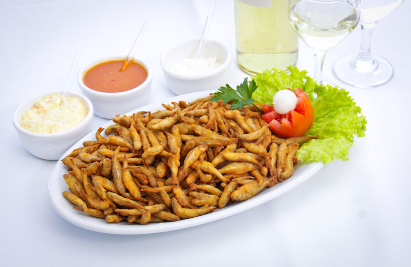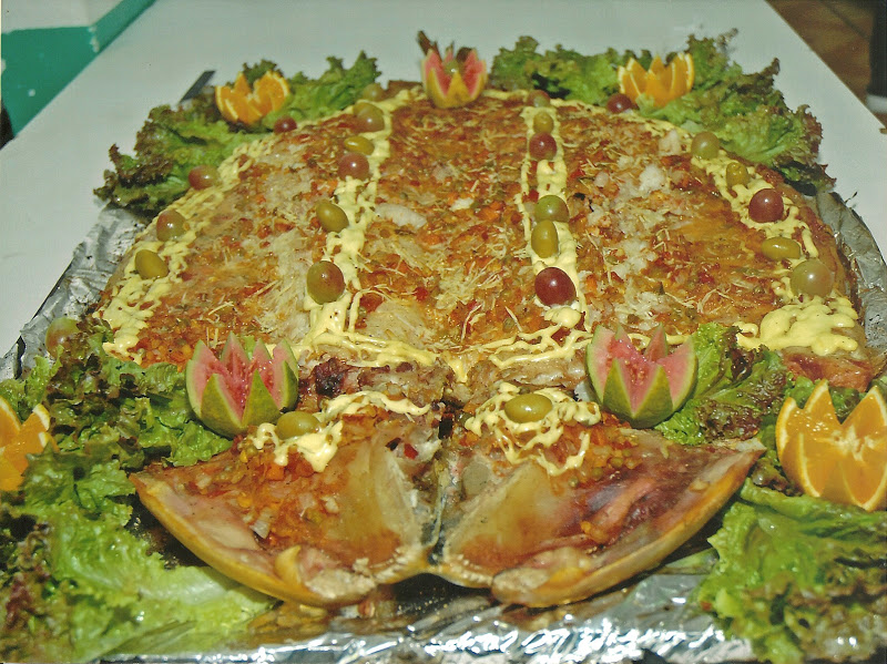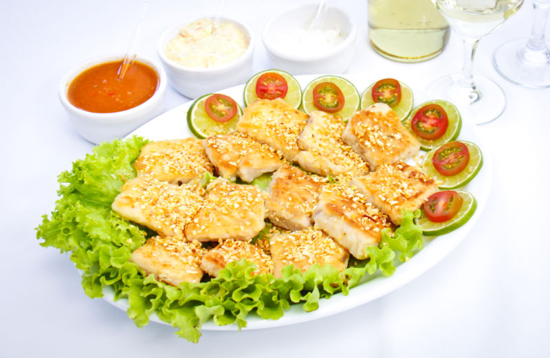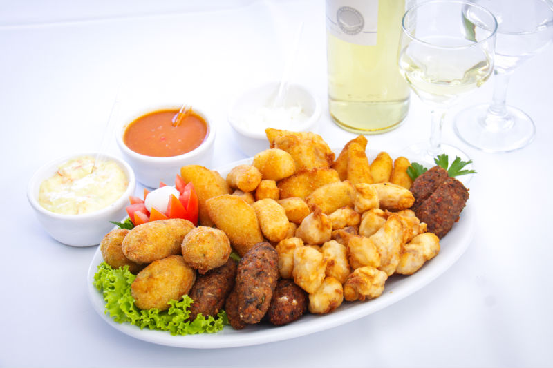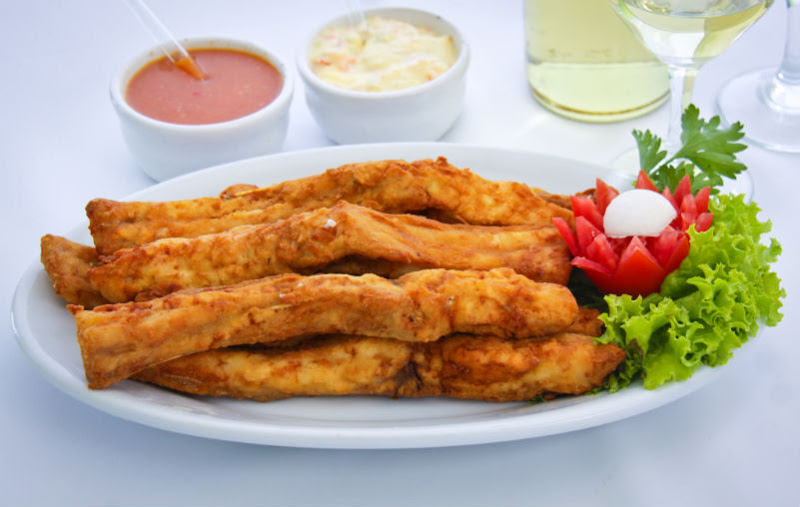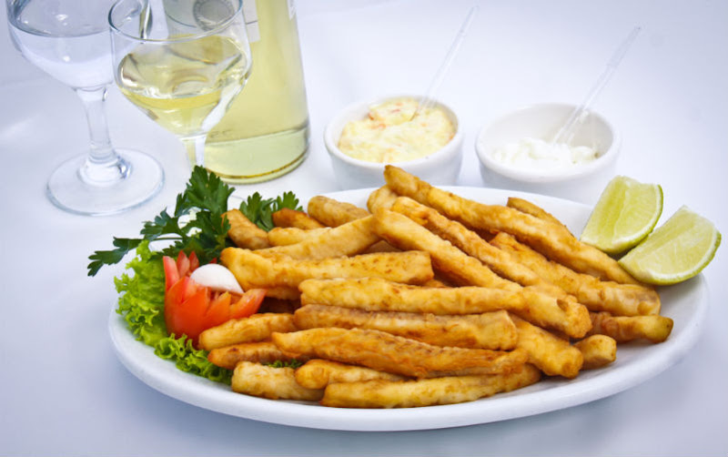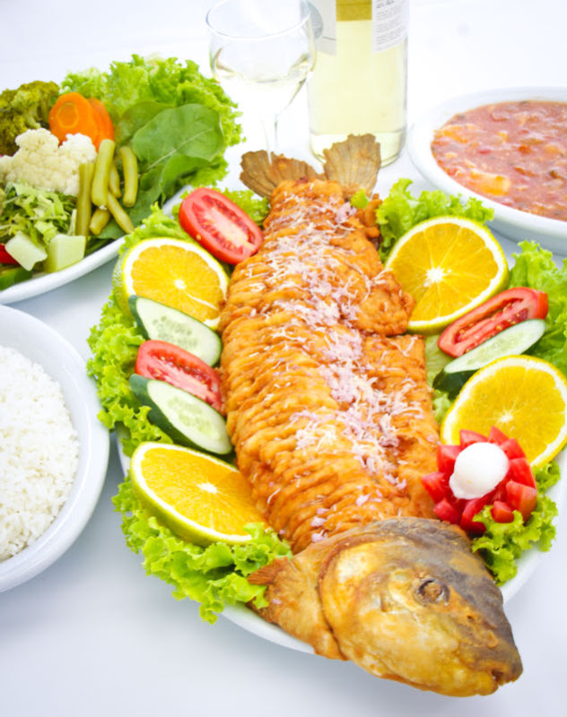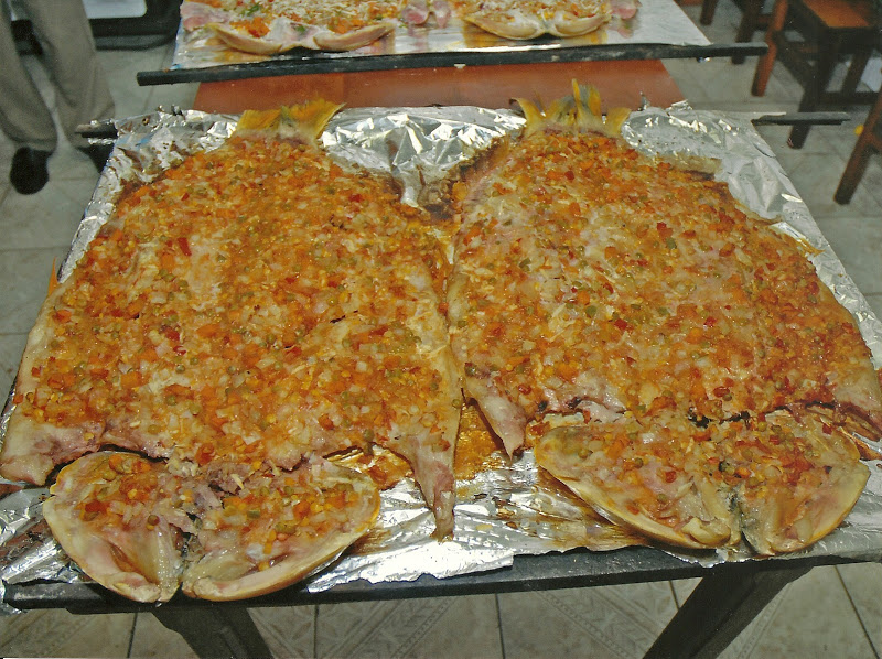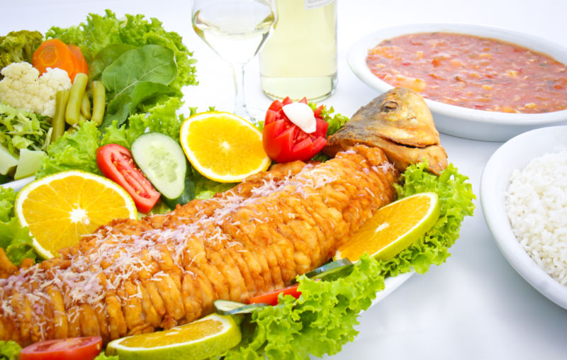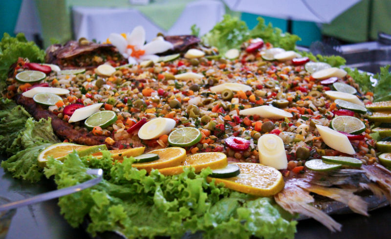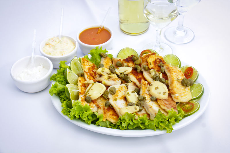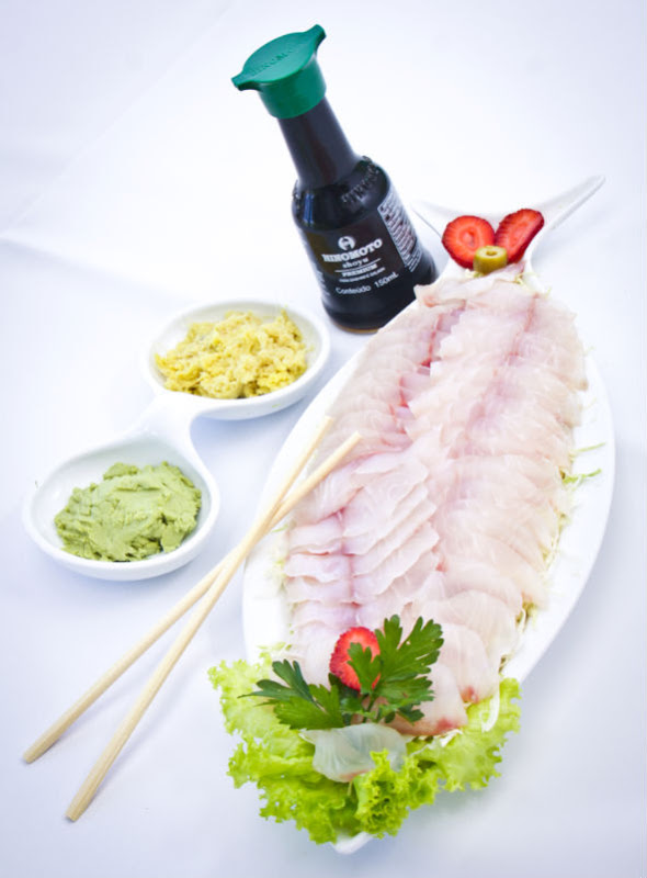Especialidades; Dourado assado na grelha, Saximi de Piapara, Salmão e Bacalhau.