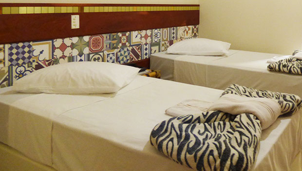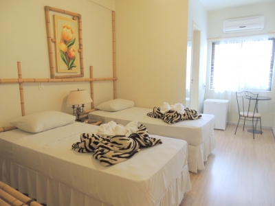 Todos os apartamentos são com camas box, ar condicionado e ventilador(para muitos o ar condicionado é prejudicial), tv a cabo , telefone e banheiro privado.