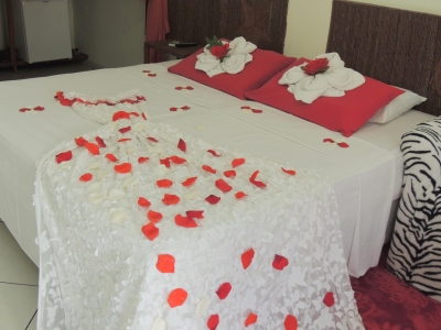 Todos os detalhes da pousada foram feitos com muito carinho. A decoração é quase toda em bambu e cipó; as plantas do jardim, a área que envolve a piscina , o estacionamento fechado (incluso na diária), tudo pensando em comodidade e bem estar.